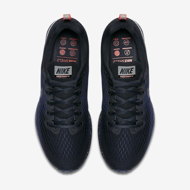 Nike Air Zoom Pegasus 34 Shield Herren Laufschuhe Schwarz/Obsidian/Schwarz 907327-001